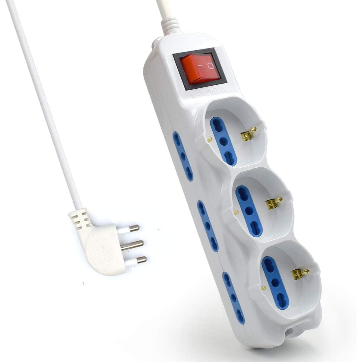 Il dispositivo è dotato di 9 prese di corrente per spine italiane di cui 3 con bipasso Schuko. 3 prese di corrente per spine italiane (10/16a) e schuko. corrente elettrica massima 16 a. localizzazione italia.
